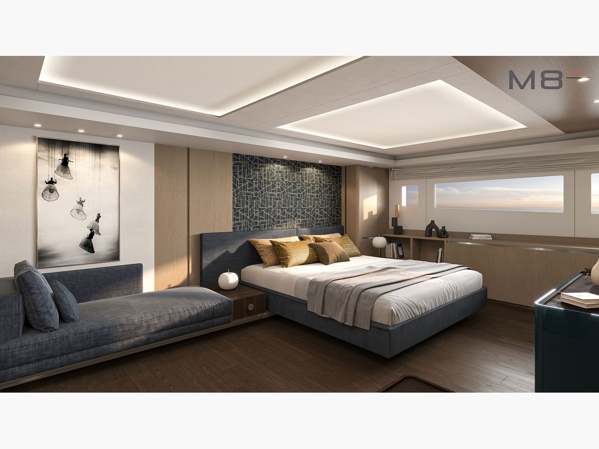 Avec moins de 24 mètres de longueur, le M8 Evo offre un avantage rare : accéder à des criques et des ports confidentiels, souvent inaccessibles aux grandes unités, tout en conservant les volumes et la prestance d’un yacht de catégorie supérieure. Un équilibre unique entre liberté et prestige.